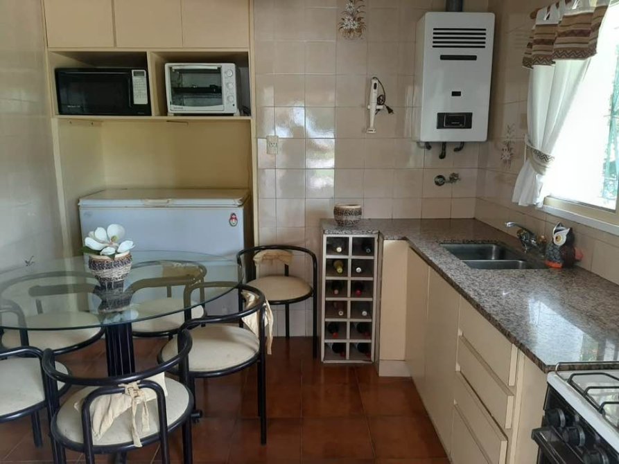 Se compone de 2 dormitorios, cocina comedor, baño completo, living comedor, quincho cerrado con parrilla, asador, horno de barro, pileta y parque libre.